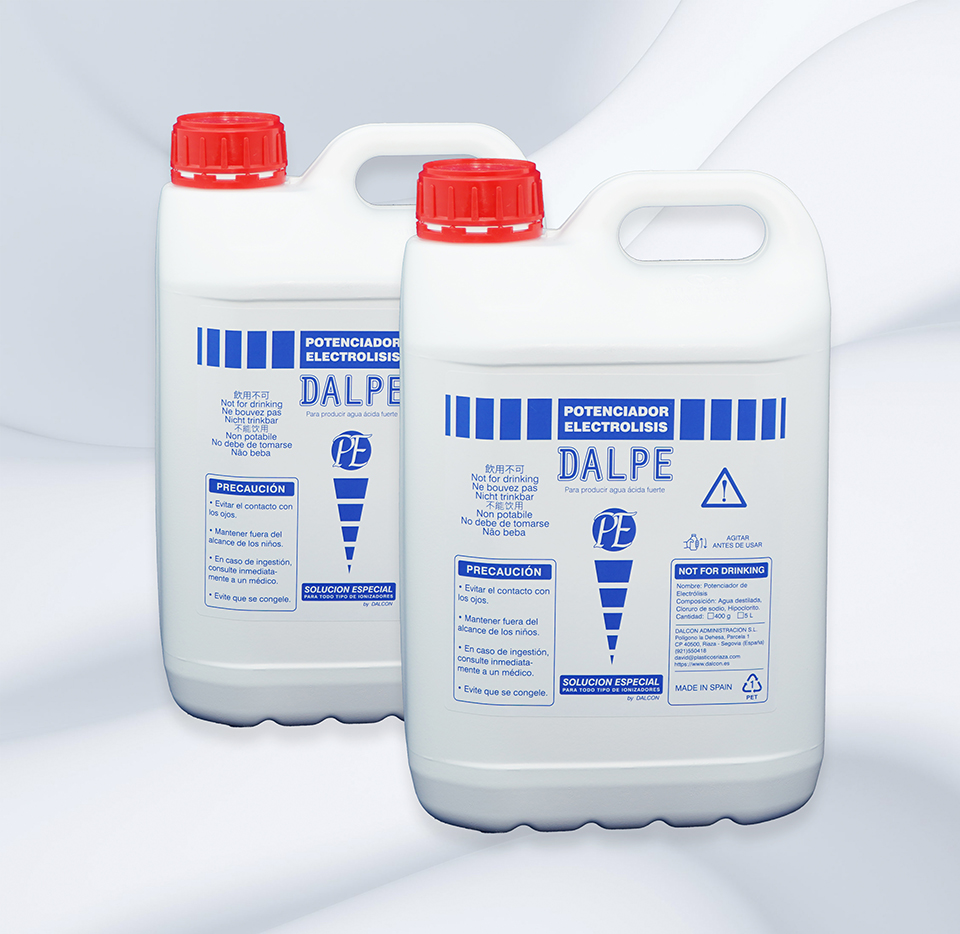 Disponible en varios formatos, cada botellón Potenciador de Electrólisis Dalpe está equipado con un cierre hermético de alta seguridad que mantiene la solución fresca y estable en todo momento. Su uso es fácil y seguro, adaptado tanto para usuarios domestico como para profesionales del sector.